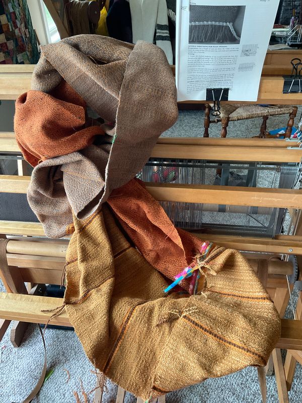 Professionally milled wool from the flock hand-dyed with goldenrod from the same hayfields that fed the sheep. Bronson Lace border.