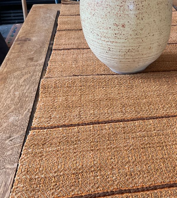 Baling twine mat in goose-eye twill.