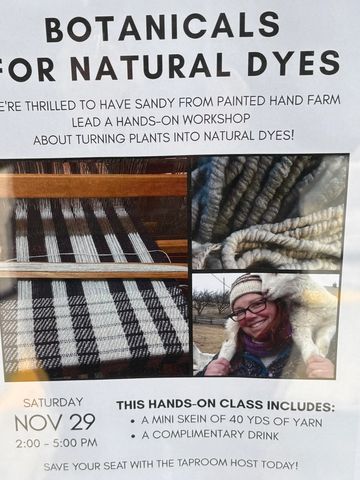 Learn about natural dying with black walnuts and shagbark hickory nut trees. This is a hands-on demonstration and participants receive 2 mini skeins of yarn.